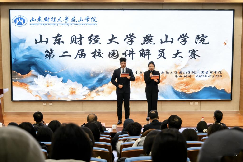 12月10日下午,山东财经大学燕山学院第二届校园讲解员大赛在图书馆报告厅举办。本次比赛旨在锤炼学生语言表达与文化传播能力,发掘兼具亲和力与专业素养的讲解人才,更好地诠释校园精神内核,传递文化魅力。